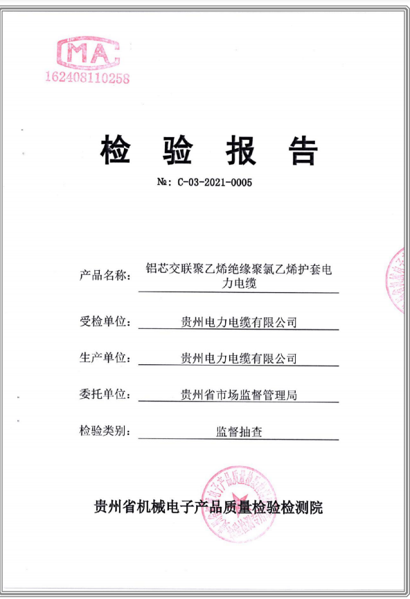 鋁芯交聯(lián)聚乙烯絕緣聚氯乙烯護套電力電纜 檢驗報告